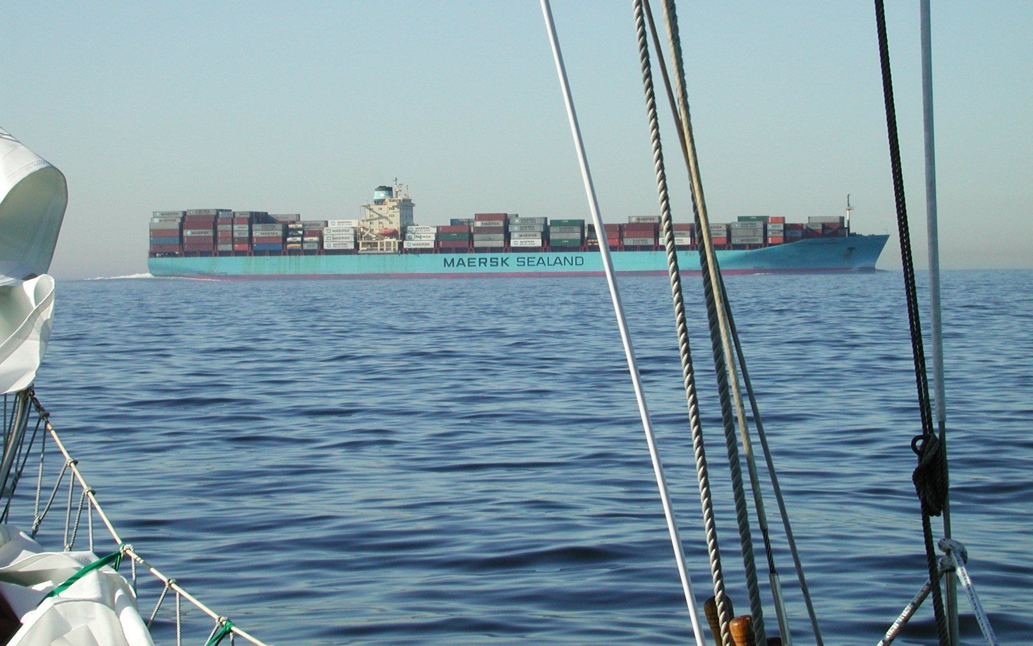 Container ship passing. This was just as we were entering the main ship channel to cross it. The crossing took 55 minutes, going flat out at right angles to the channel.