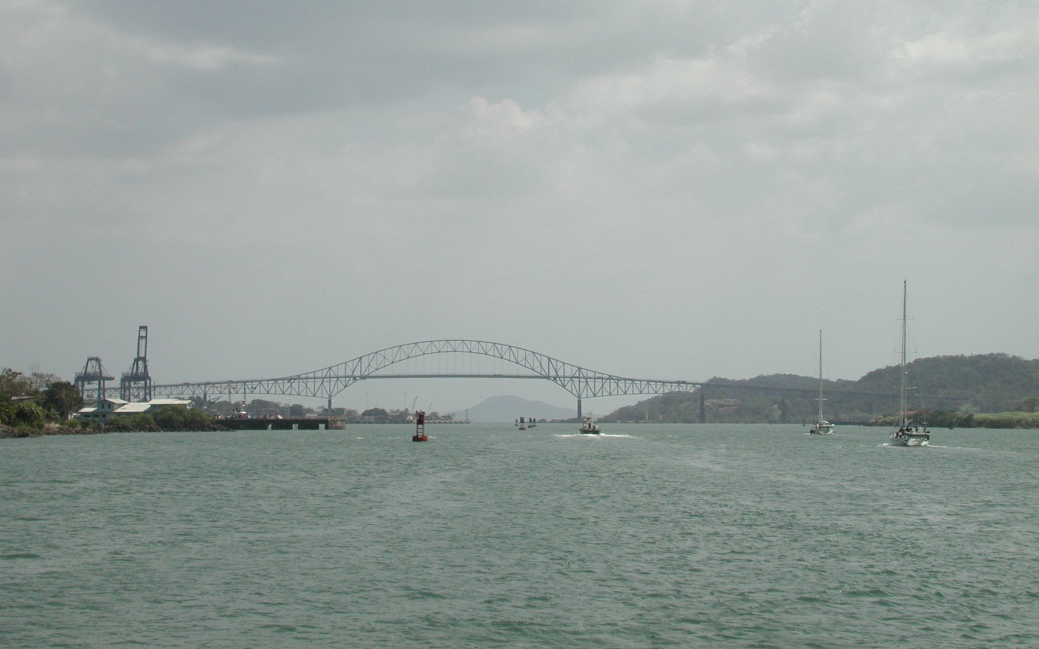 Practice transit: The Bridge of the Americas. The Bridge of the Americas ahead, the finishing line of the transit. We completed our transit in about seven and a half hours; extremely fast, which was due to Doctor Bird's fast top speed, as well as a strong following wind.