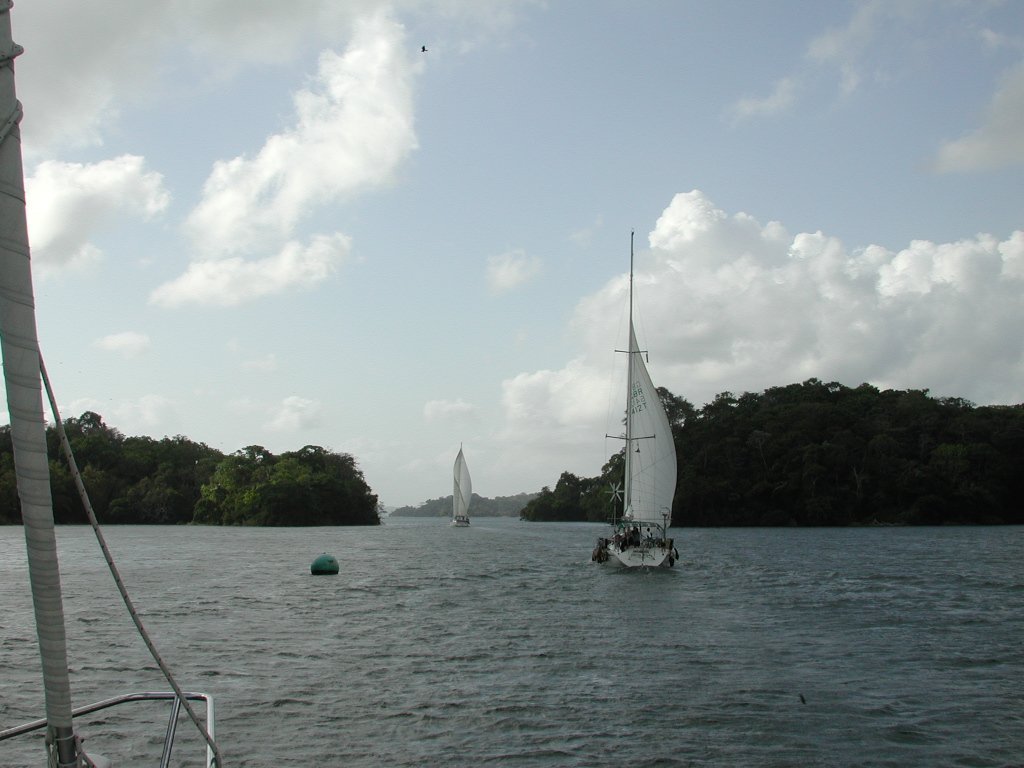 Practice transit: Entering the Banana Cut. Entering the Banana Cut; all three boats sailing to assist their engines, and to make the best possible speed.