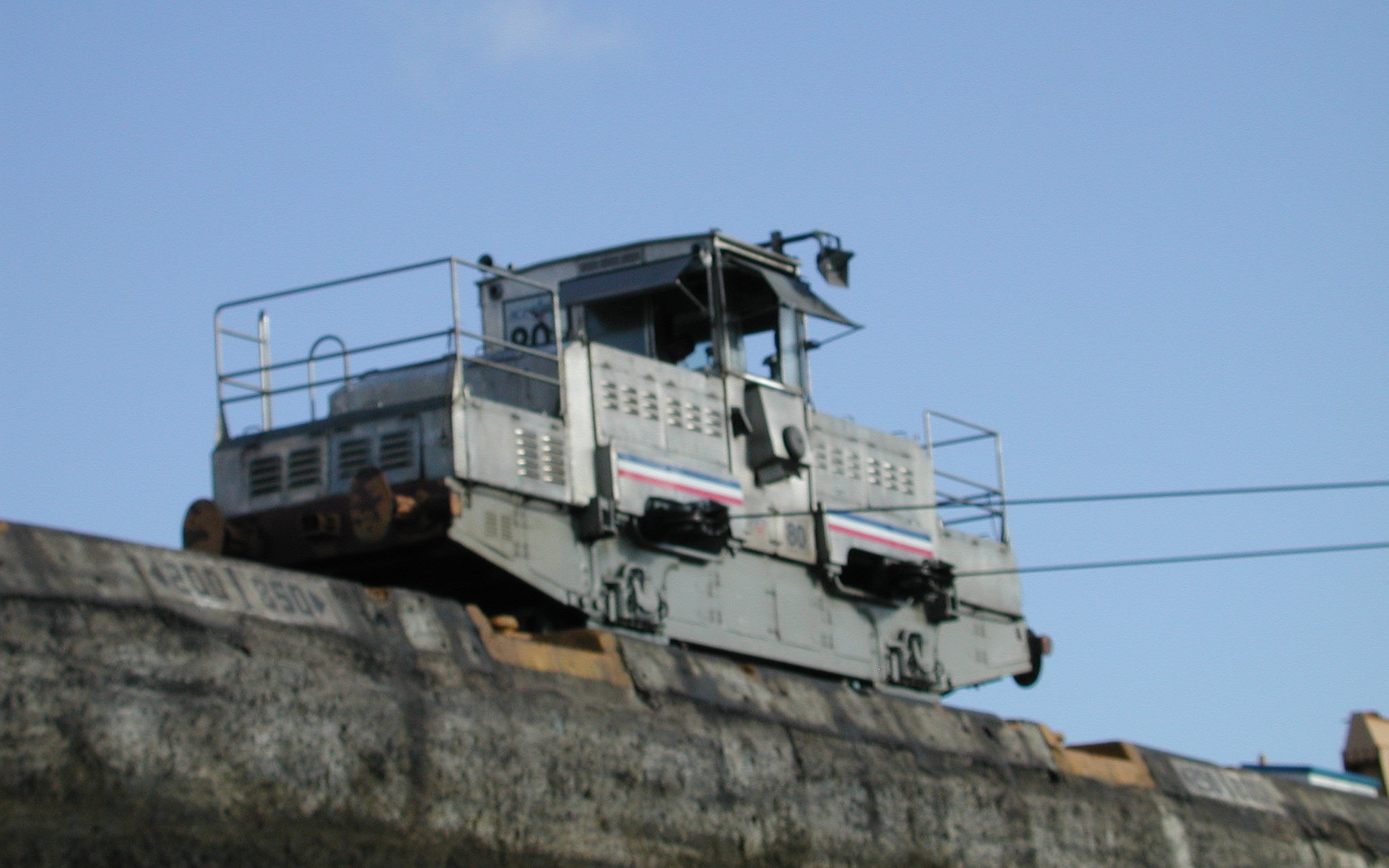 Mule on the lock wall. This is one of the mules which was moving Sea Phoenix from chamber to chamber behind us.