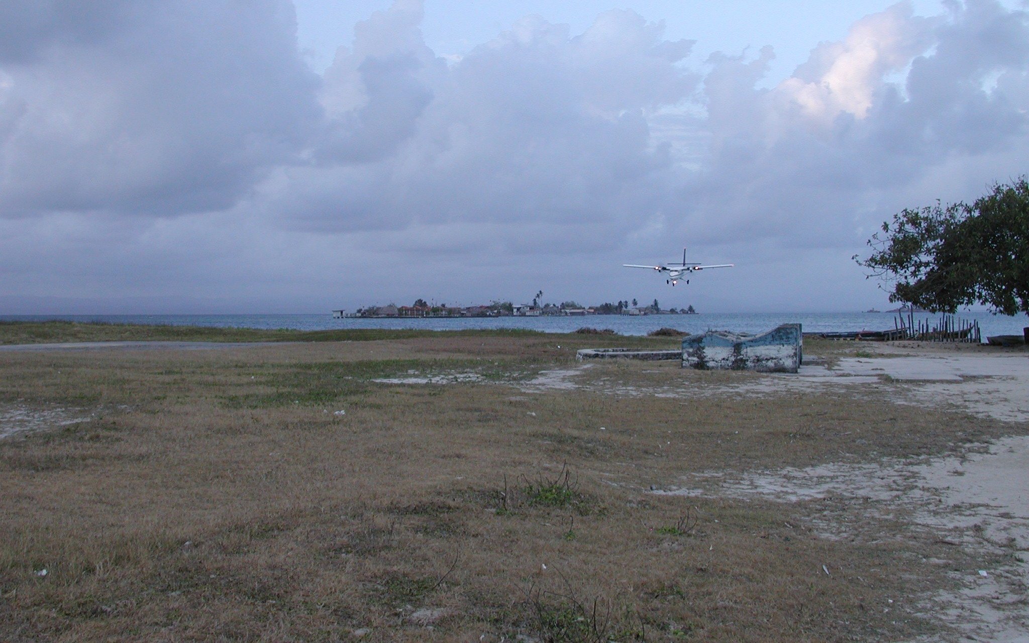 The plane landing at Porvenir. Yachts aren't allowed to anchor in line with the runway, for obvious reasons -- the plane comes in over the water at well below mast height.