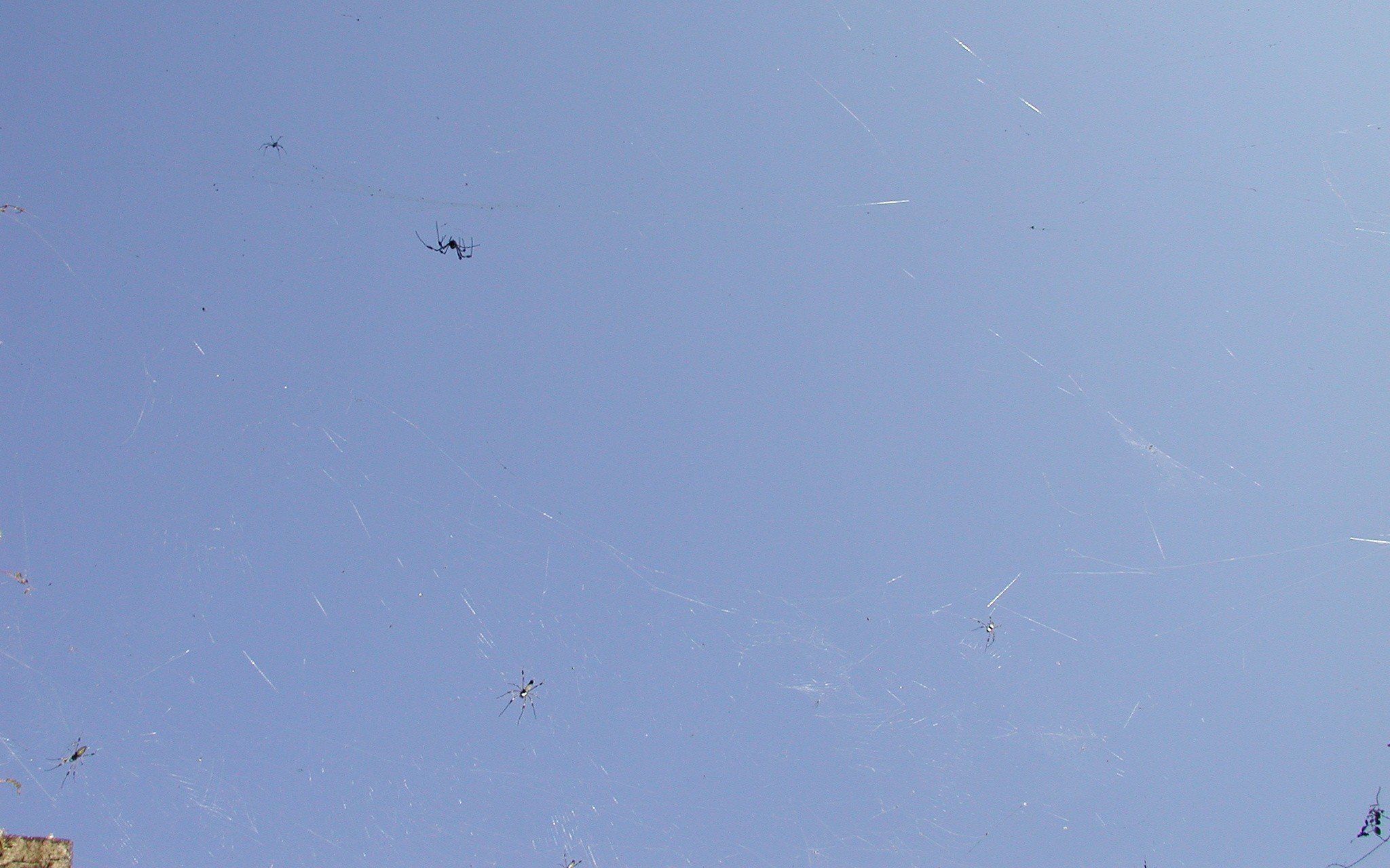 Spiders over the entrance passage. The passage roof had gone, but it was newly roofed-over with huge webs and huge spiders.