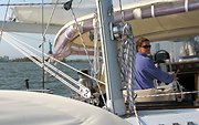 J at the helm as we motor out ... 8 May, 2007 15:54