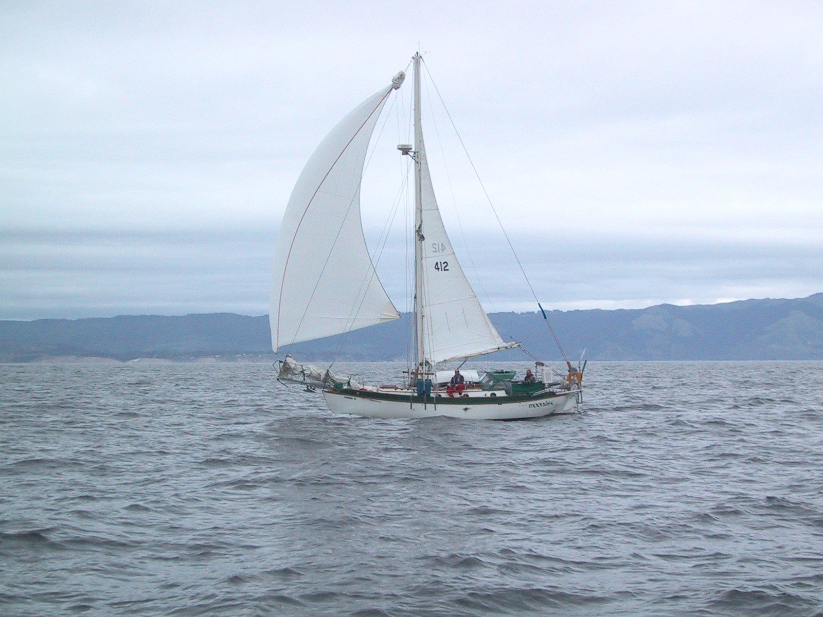 Moonrise Heading up to Drake's Bay; taken by Chris on Amazing Grace. Norm on deck, Clint in the cockpit. The Paciifc Ocean