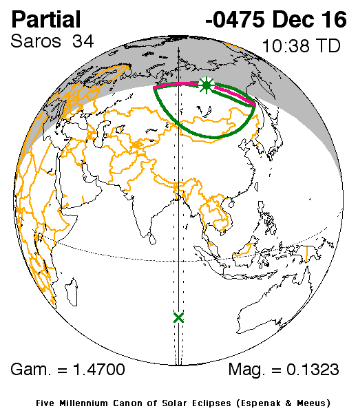 A partial eclipse of the Sun occurred on 16 December, 0476 BC UT Old Style, with maximum eclipse at 06:00 UT. With only 13% of the Sun covered at maximum eclipse, this was a very marginal eclipse at best, and rather uninteresting.