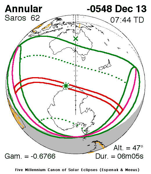 An annular eclipse of the Sun occurred on 13 December, 0549 BC UT Old Style, with maximum eclipse at 02:46 UT. A small annular eclipse covered only 93% of the Sun in a very broad path, 362 km wide at maximum, and lasted 6 minutes and 5 seconds.
