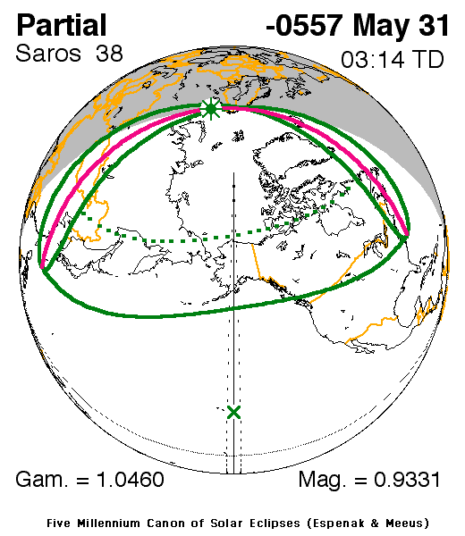 A partial eclipse of the Sun occurred on 30 May, 0558 BC UT Old Style, with maximum eclipse at 22:14 UT. This was a deep partial eclipse, with 93% of the Sun covered for viewers closest to the center. This provided a significant spectacle for those who saw it.