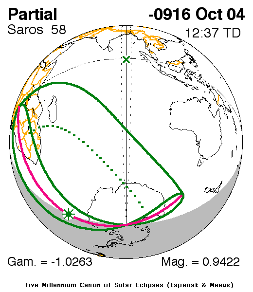 A partial eclipse of the Sun occurred on 4 October, 0917 BC UT Old Style, with maximum eclipse at 05:59 UT. This was a deep partial eclipse, with 94% of the Sun covered for viewers closest to the center. This provided a significant spectacle for those who saw it.