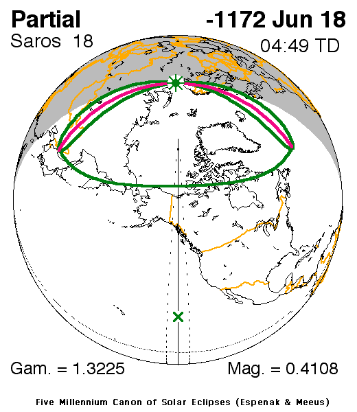 A partial eclipse of the Sun occurred on 17 June, 1173 BC UT Old Style, with maximum eclipse at 20:54 UT. A small partial eclipse barely darkened the Sun. With just 41% of the Sun covered for viewers closest to the center, this was of limited interest.