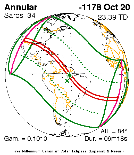 An annular eclipse of the Sun occurred on 20 October, 1179 BC UT Old Style, with maximum eclipse at 15:42 UT. A small annular eclipse covered only 92% of the Sun in a very broad path, 299 km wide at maximum, and lasted 9 minutes and 18 seconds.