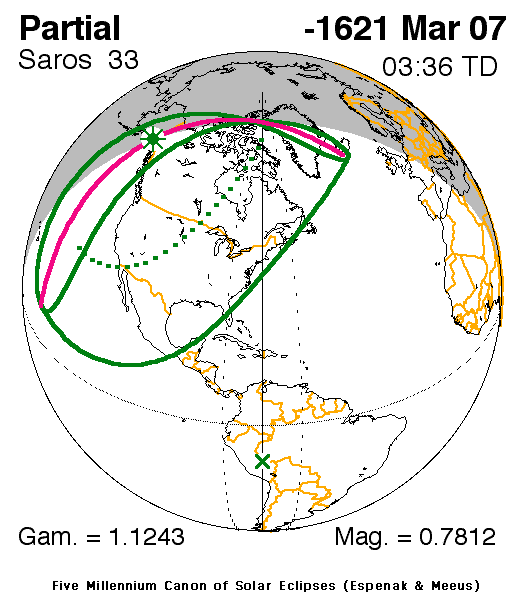 A partial eclipse of the Sun occurred on 6 March, 1622 BC UT Old Style, with maximum eclipse at 17:08 UT. A moderate partial eclipse, with 78% of the Sun covered for viewers closest to the center, created an interesting spectacle.