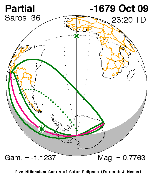A partial eclipse of the Sun occurred on 9 October, 1680 BC UT Old Style, with maximum eclipse at 12:30 UT. A moderate partial eclipse, with 78% of the Sun covered for viewers closest to the center, created an interesting spectacle.