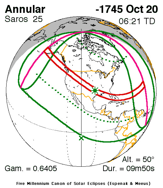 The annular eclipse lasted for 9 minutes and 50 seconds. Maximum eclipse was at 19:06:46 UT.