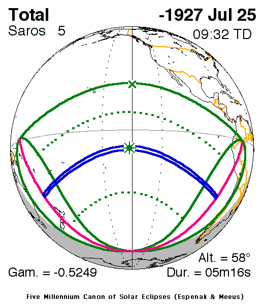 A total eclipse of the Sun occurred on 24 July, 1928 BC UT Old Style, with maximum eclipse at 21:06 UT. A dramatic total eclipse plunged the Sun into darkness for 5 minutes and 16 seconds at maximum, creating an amazing spectacle for observers in a broad path up to 208 km wide.