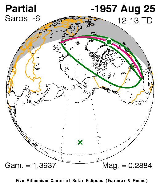 A partial eclipse of the Sun occurred on 24 August, 1958 BC UT Old Style, with maximum eclipse at 23:35 UT. A small partial eclipse barely darkened the Sun. With just 29% of the Sun covered for viewers closest to the center, this was of limited interest.
