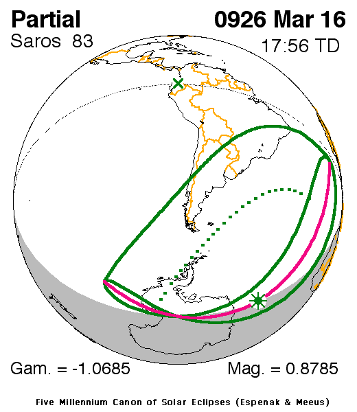 A partial eclipse of the Sun occurred on 16 March, 0926 UT Old Style, with maximum eclipse at 17:22 UT. This was a deep partial eclipse, with 88% of the Sun covered for viewers closest to the center. This provided a significant spectacle for those who saw it.