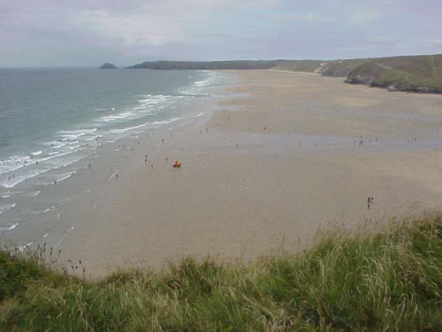 The huge, beautiful golden beach at Perranporth -- and the dozen or so people on it.