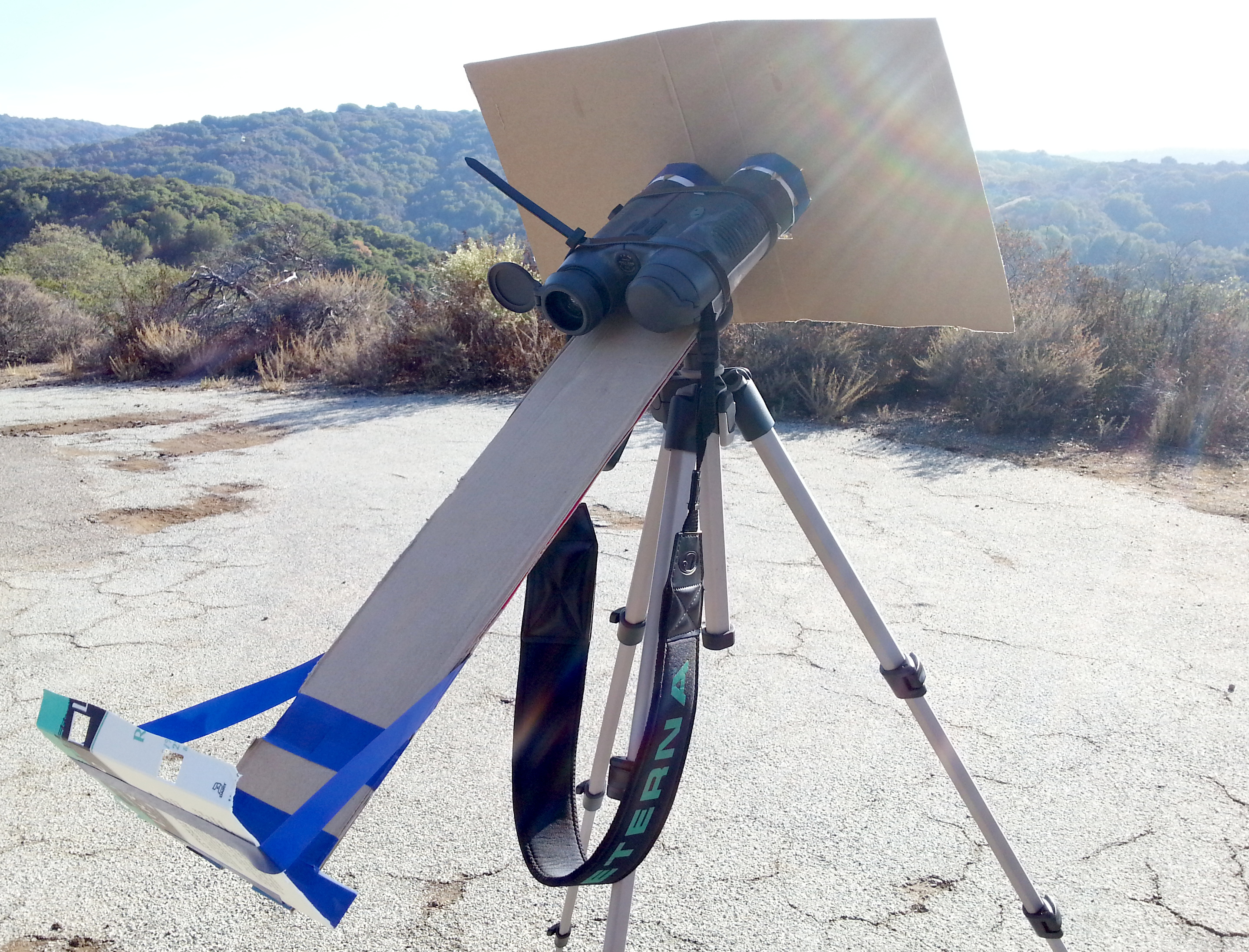 A simple binocular-based eclipse projector, here in use at the partial solar eclipse of 23 Oct, 2014, in Palo Alto.