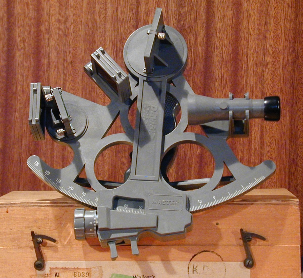 My sextant This boat really came fully equipped... this is a Davis Mark 25, plastic, but quite accurate enough for a small boat (I'm told). People have sailed round the world with much less fancy ones than this.