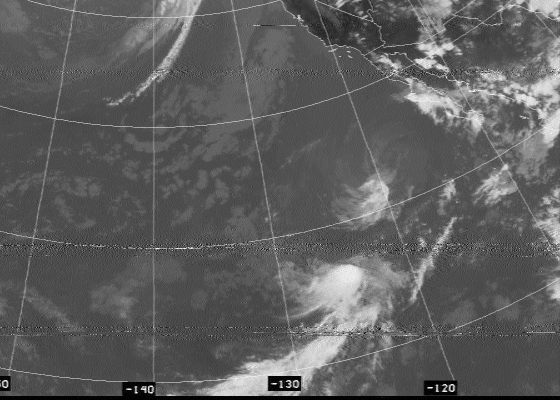 Sample weatherfax -- part of a satellite picture showing cyclone activity off Baja California.