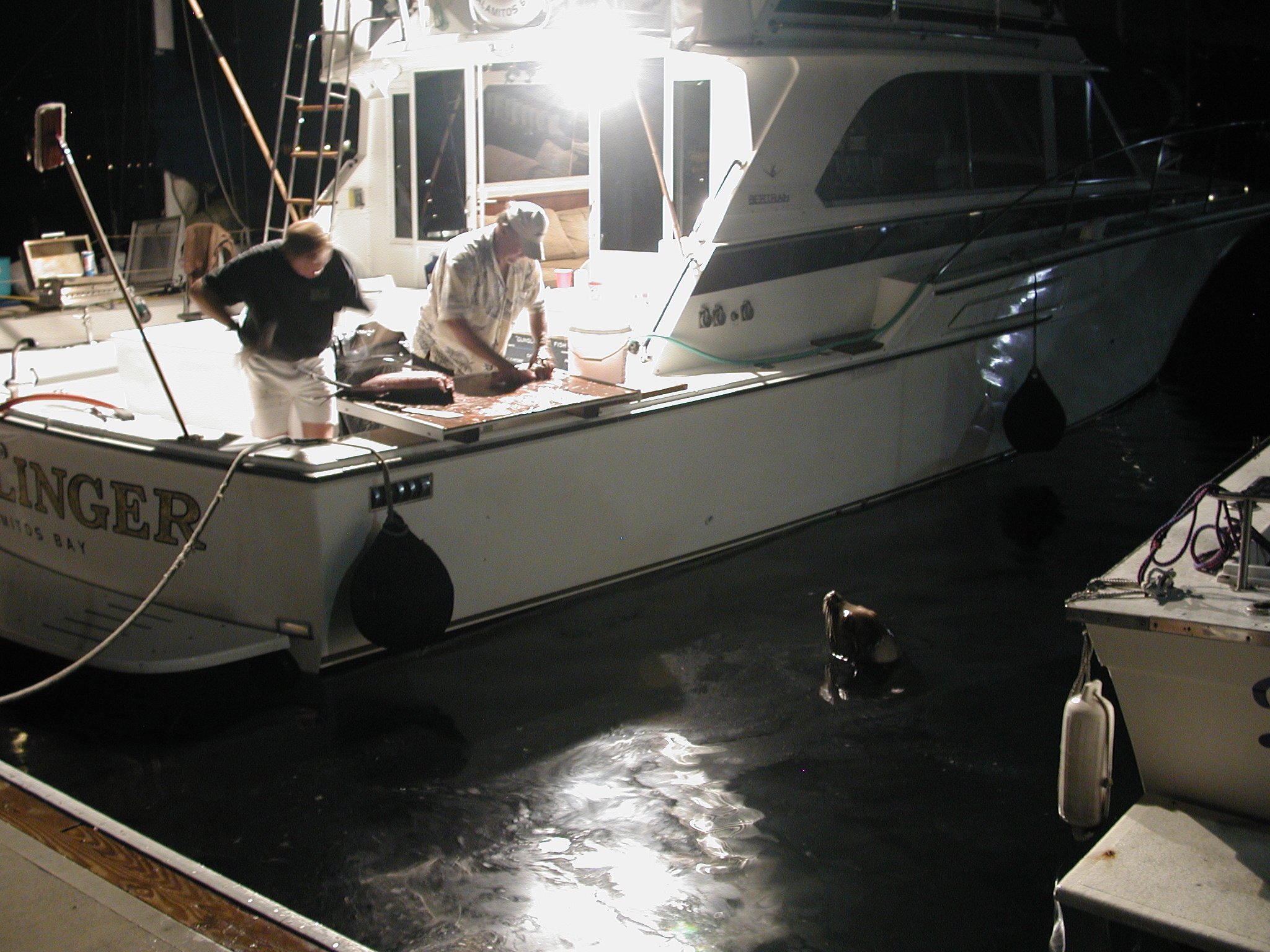 Seal on the hunt. These guys spent an entire day and evening cleaning a monster catch of fish that they'd pulled in on the way up from La Paz. The bounty of fish parts attracted a visitor...