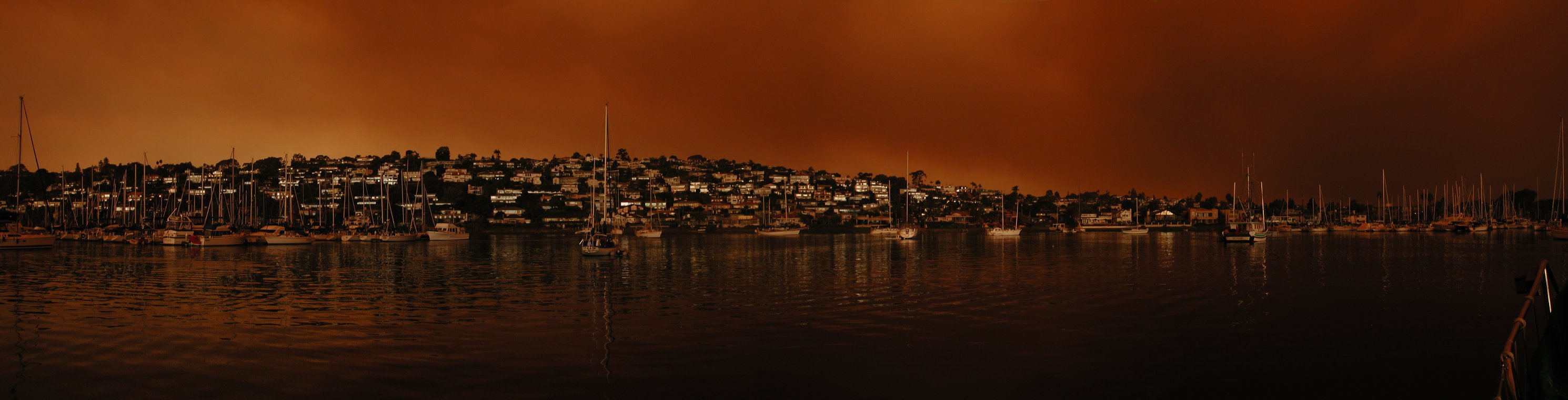 San Diego wildfires: panorama of the anchorage.