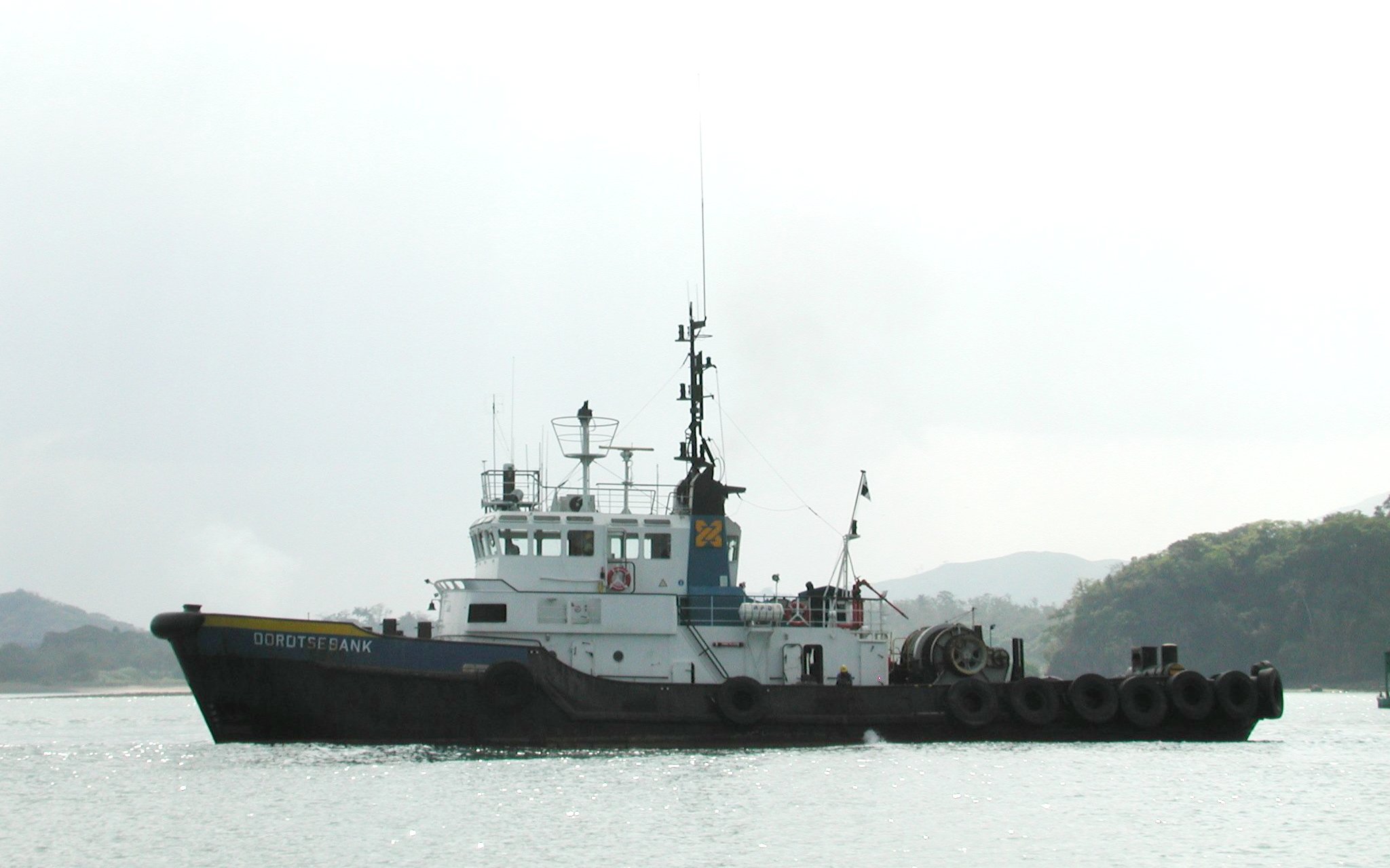 A canal tug waiting for an incoming freighter, just in front of Moonrise. Moonrise was moored on the third row of boats in from the channel, and even so we were just 100 yards from the edge of the channel. The canal is to the right.