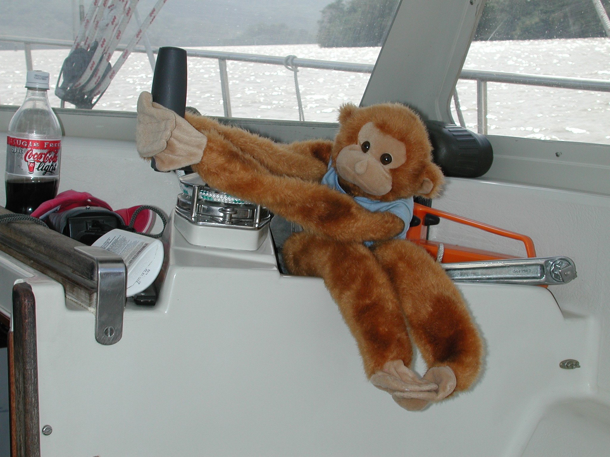Practice transit: Monkey working the winches. Doctor Bird's mascot finally takes a turn at the winches.
