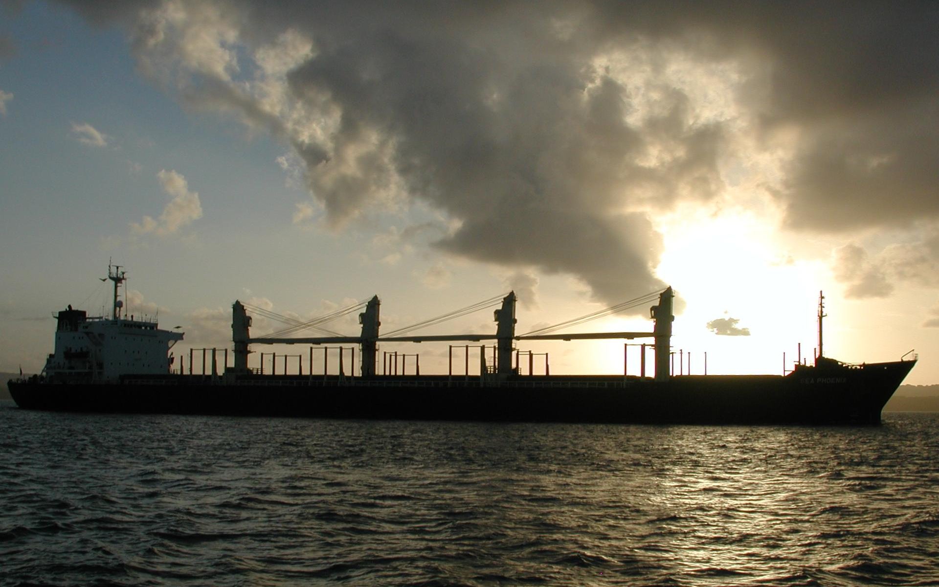 Sea Phoenix, our lock-mate, leaving. The freighter we shared a lock with, making her way out to sea.