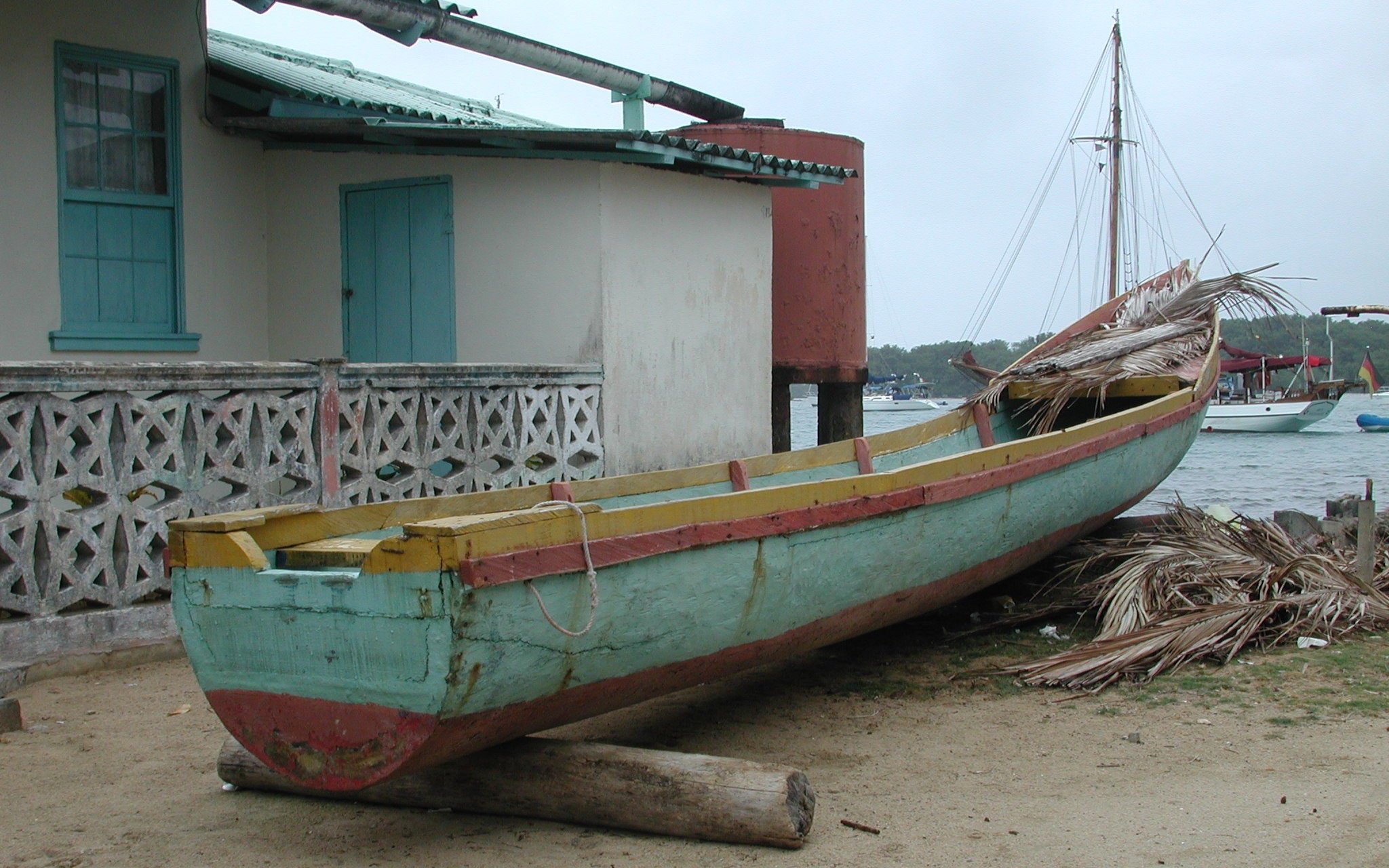 Kuna boat on land. On our shopping expedition to Nargana, for ice and vegetables. This was during a very cloudy week.