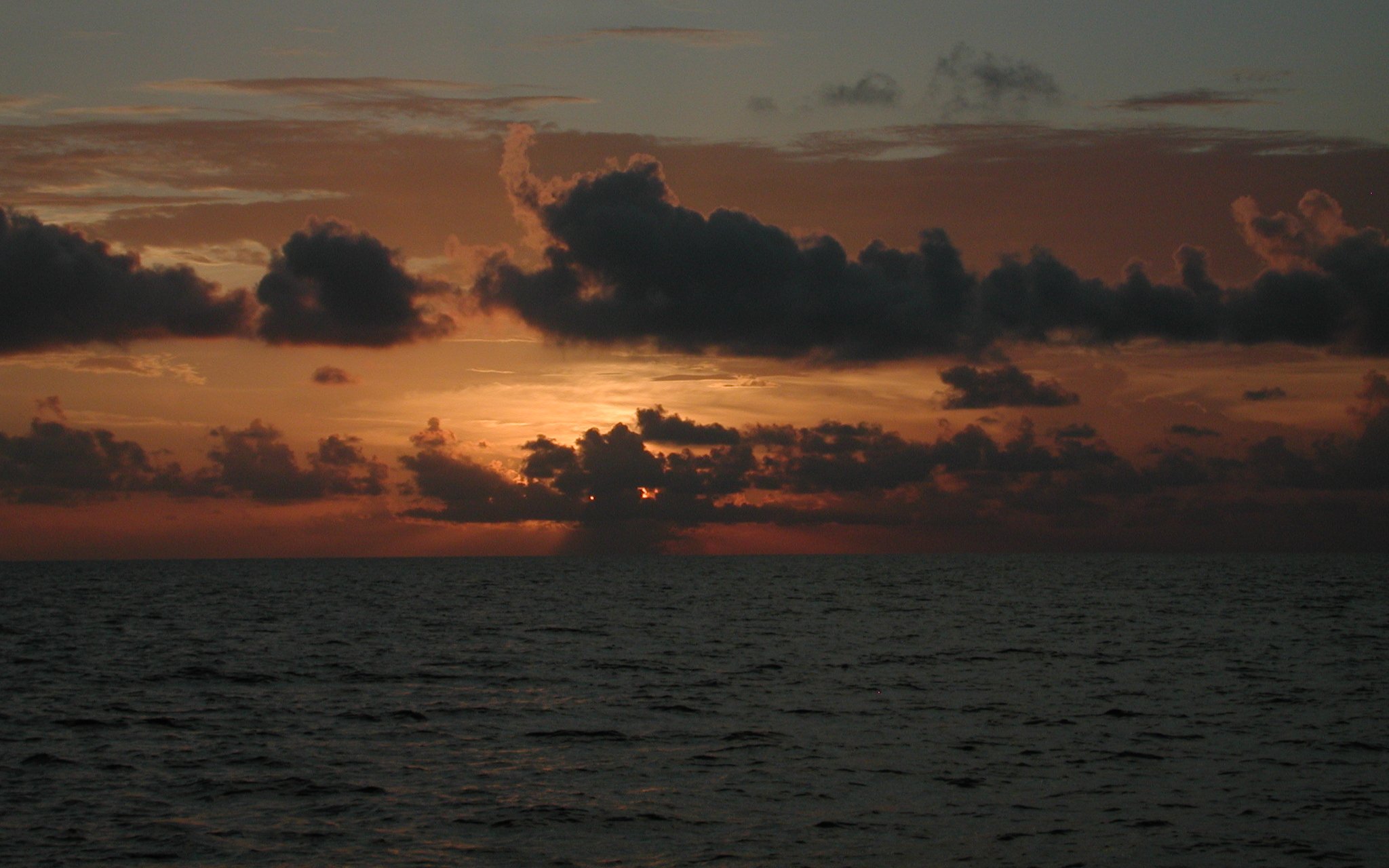 Sunset off Florida; passing between Florida, Cuba and the Bahamas.