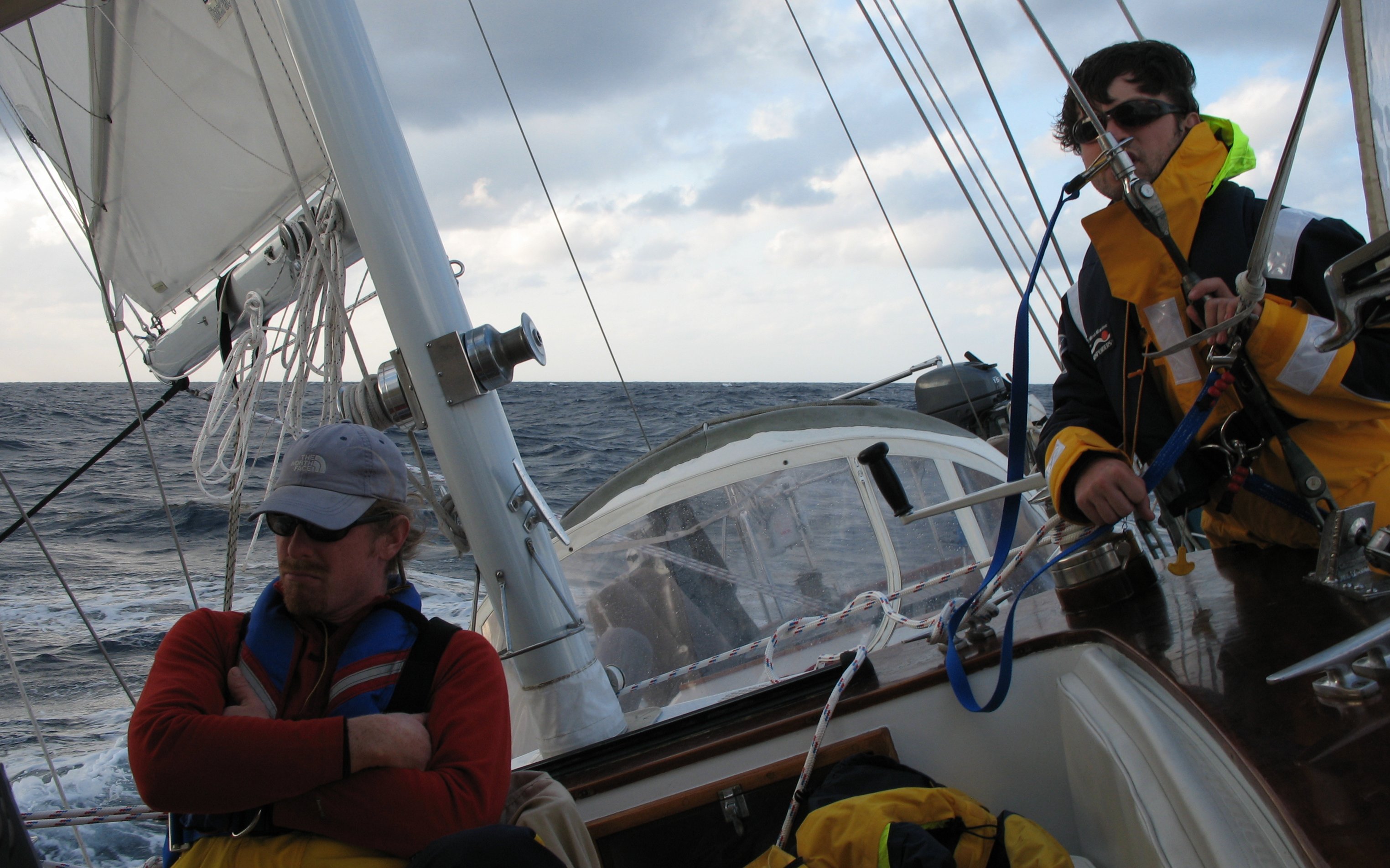 Jenny reefing the mainsail.