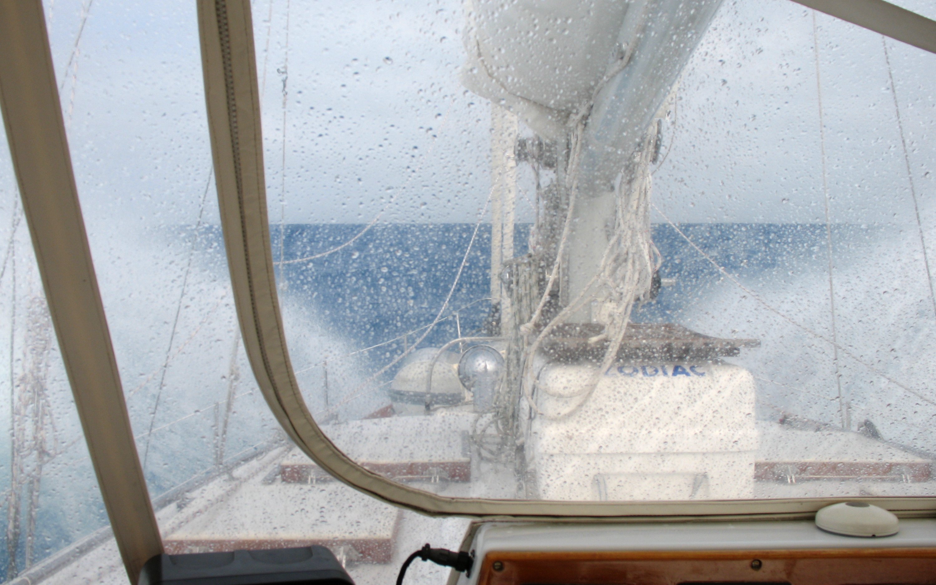 Big bow waves as we motor out of Bermuda, in rotten conditions.