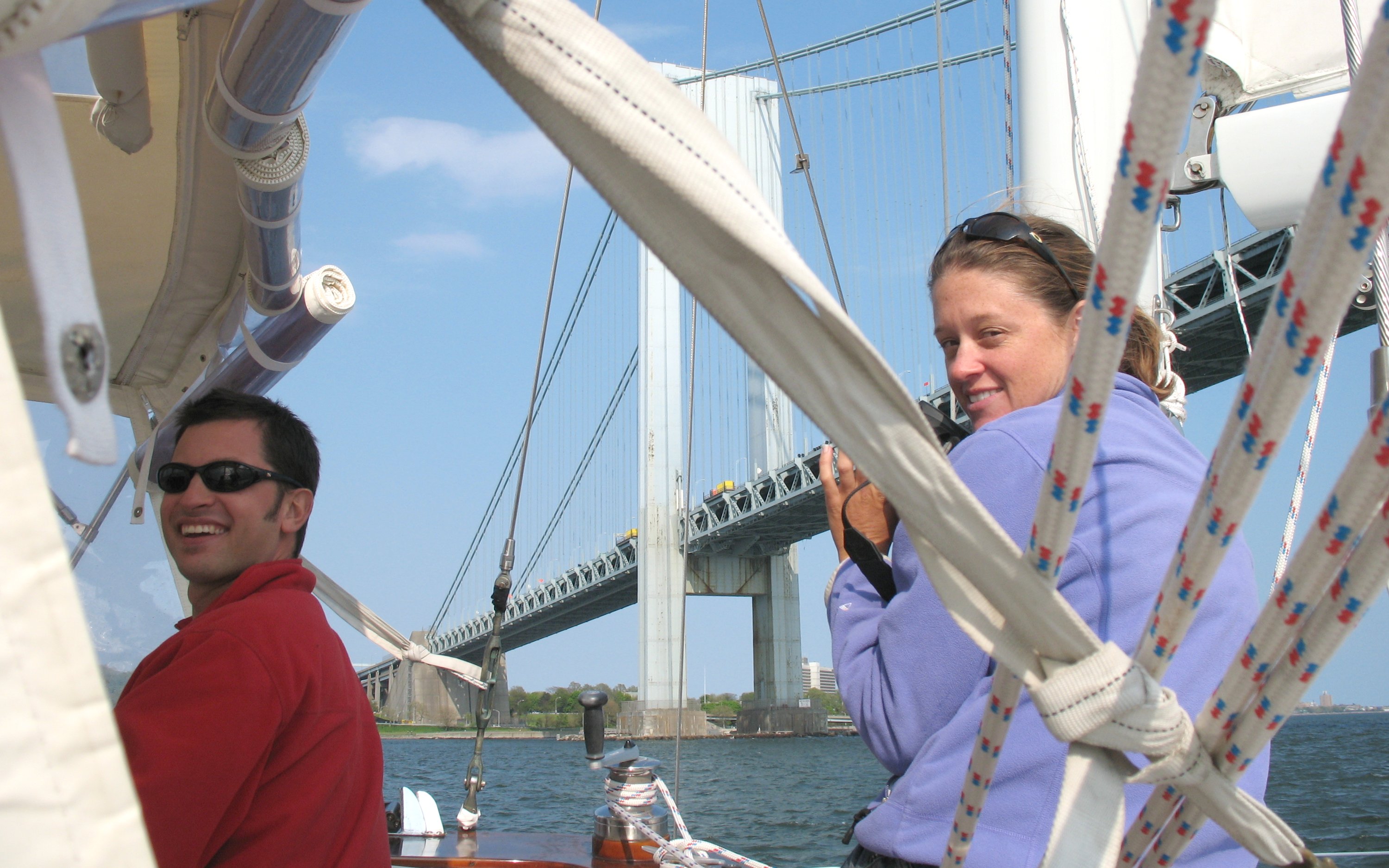 J and Jenny, passing under the Verazzano Narrows Bridge.