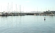 We made it back to the estuary at 16:51, sailing under main and jib; the wind was quite strong in the estuary, and pushed us along nicely right up to Oakland Yacht Club in Alameda, where Bruce Schwab's Ocean Planet is docked. We finally got back to the berth at 17:55 -- BBQ time!